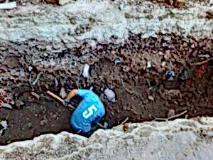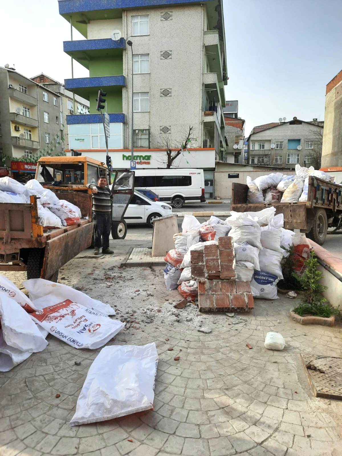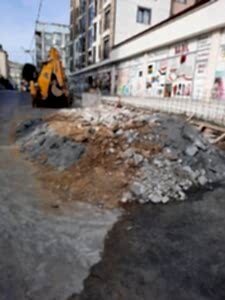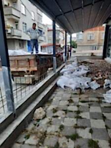 Ekskavatörle moloz atımı.